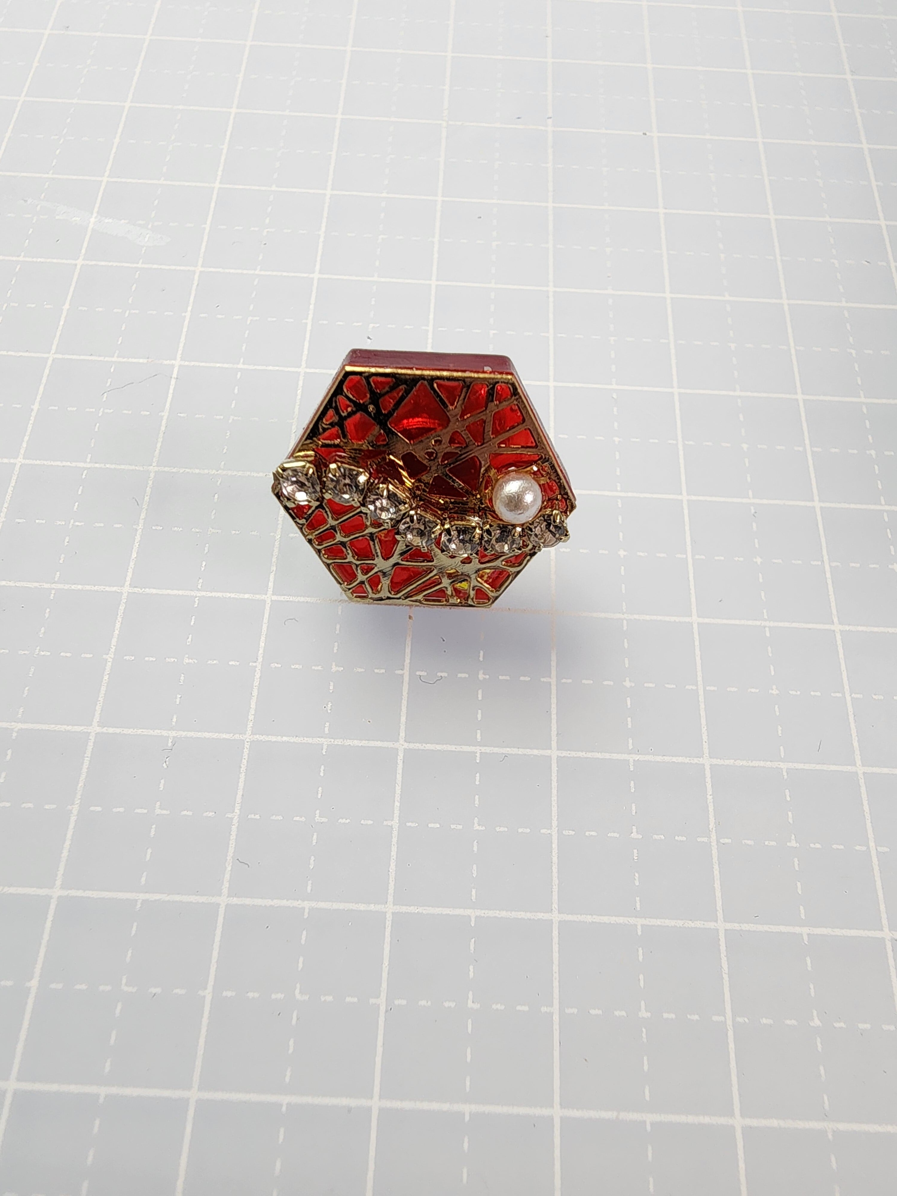 2×2㎝ レジンを土台に、金の透かしとラインストーンで少し和風に仕上げました。 スカーフ留めなどにも使えます。 赤と青の2種類ご用意しました。