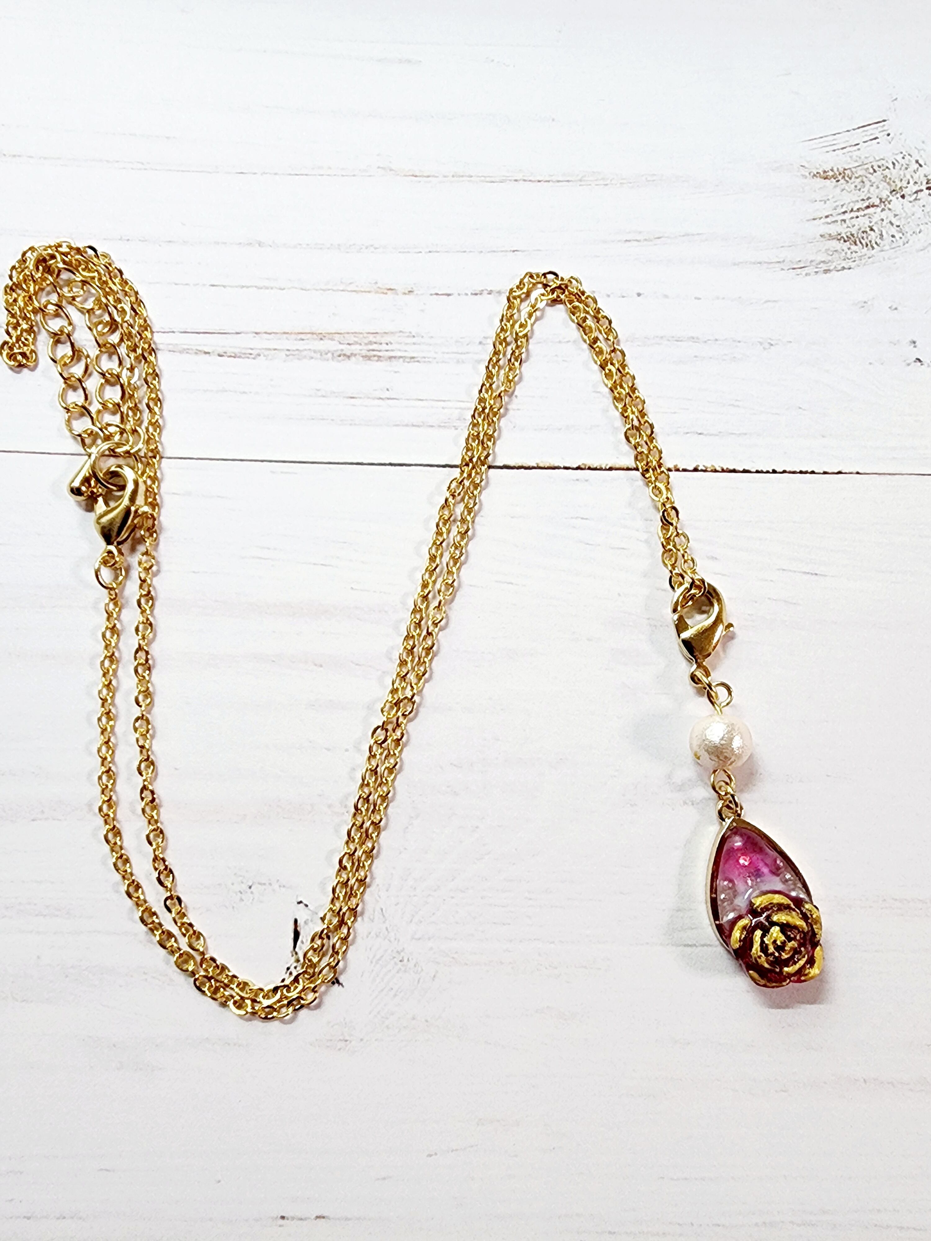 薔薇とパールのペンダント | アトリエ鼓乃箱